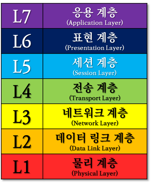 ISO (국제 표준화 기구)에서 만든 네트워크 통신의 7단계 과정을 말하는 것입니다.