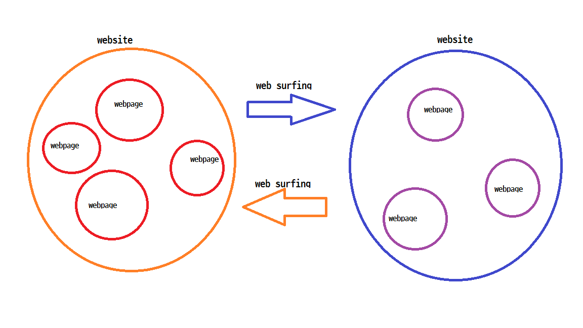웹페이지로 구성된 웹사이트가 있고 이 웹사이트를 돌아다니는 것을 웹서핑이라고 부른다.