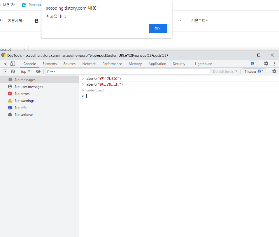 java script에서 가장 많이 사용하는 함수 중 하나인 console.log와 alert!