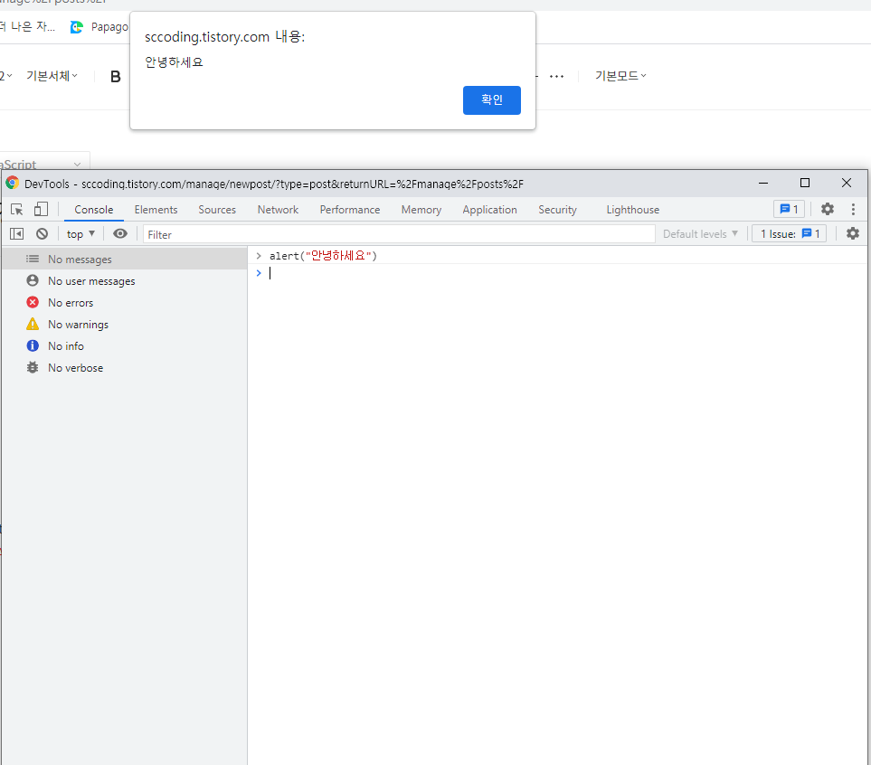 alert는 console.log와 비슷하지만, 저렇게 브라우저위에 경고창으로 띄어줍니다.