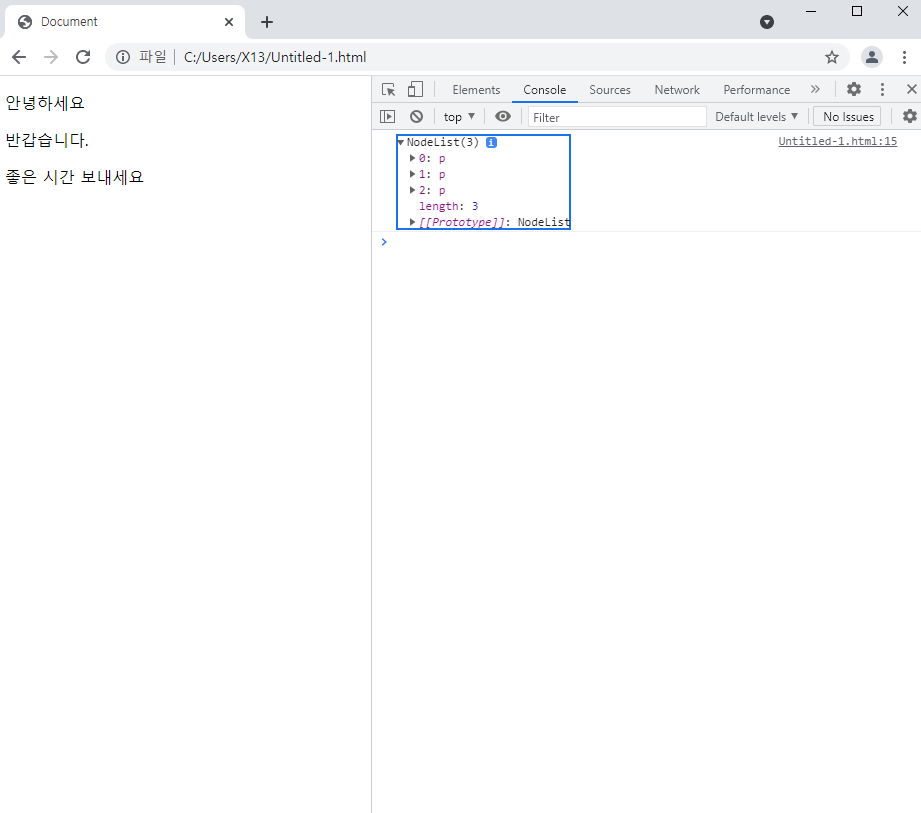 p태그 3개가 반환된 걸 확인할 수 있다.