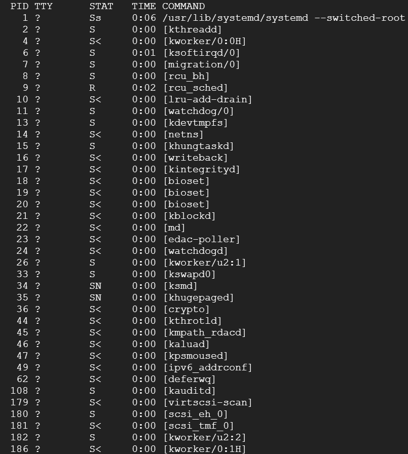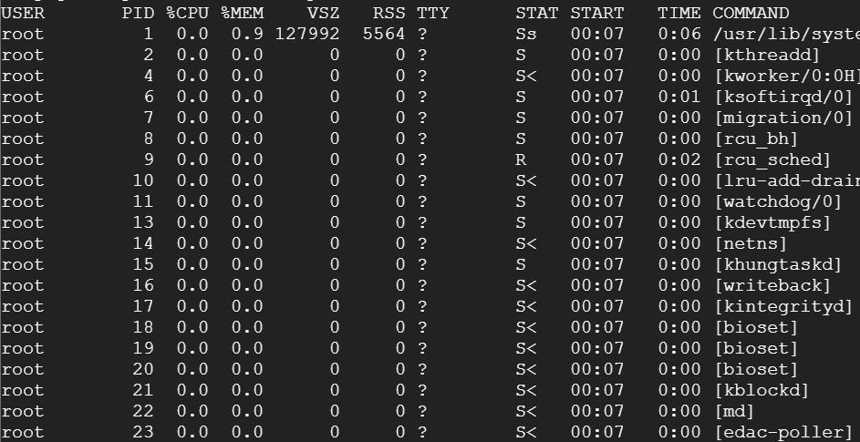 프로세스까지 모두 표시합니다. -ax 로 두 옵션을 사용하면 두개의 옵션을 동시에 볼 수 있습니다.